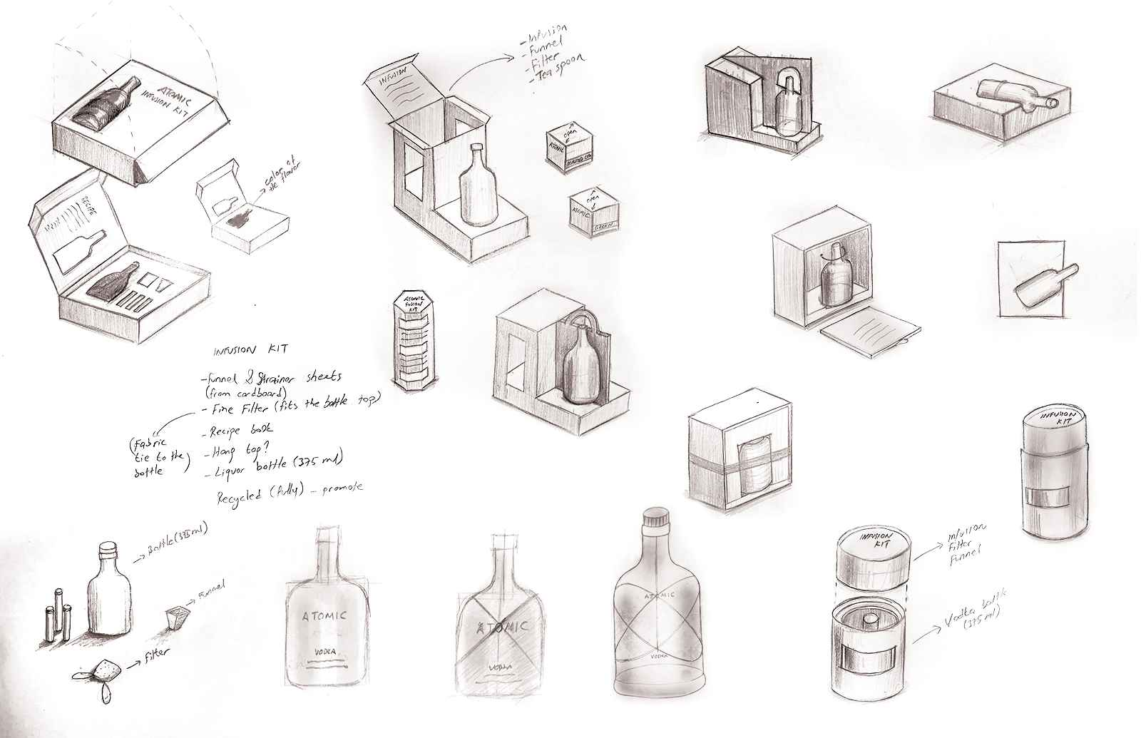 Create and apply an identity for a client that manufactures alcoholic beverages. The client wants a vodka brand as well as a line that can be marketed in the stores.