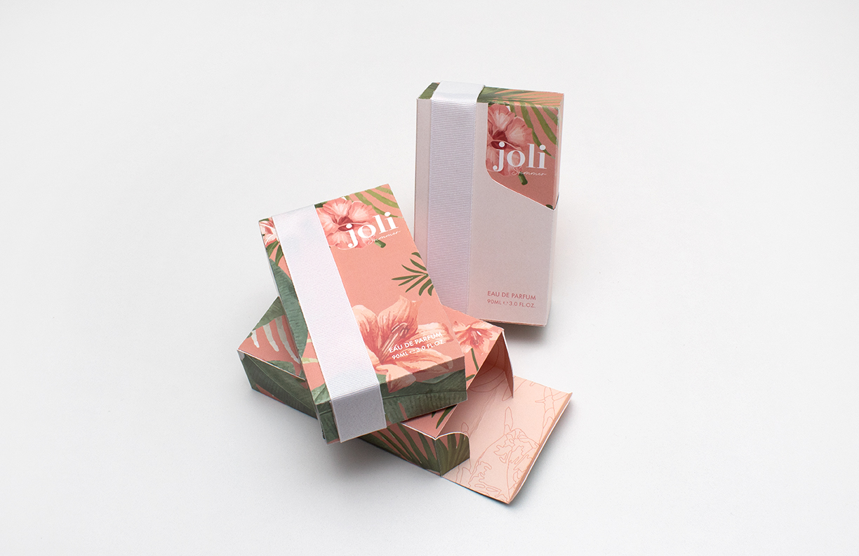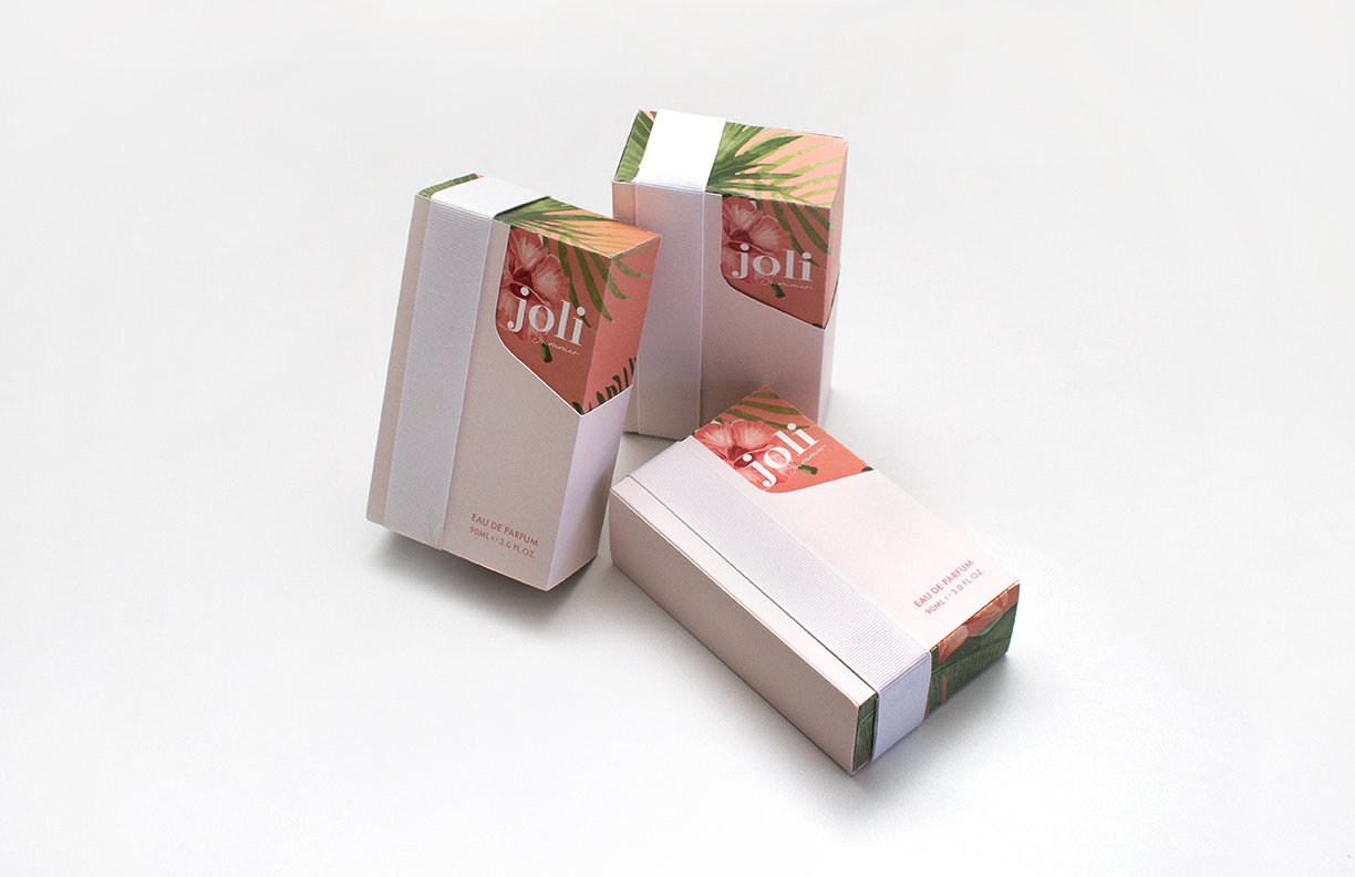 Joli Perfume Branding Joli is a fresh and soothing feminine fragrance with dominant notes of sparkling citrus and florals. It is simple in structure but has a distinct character.